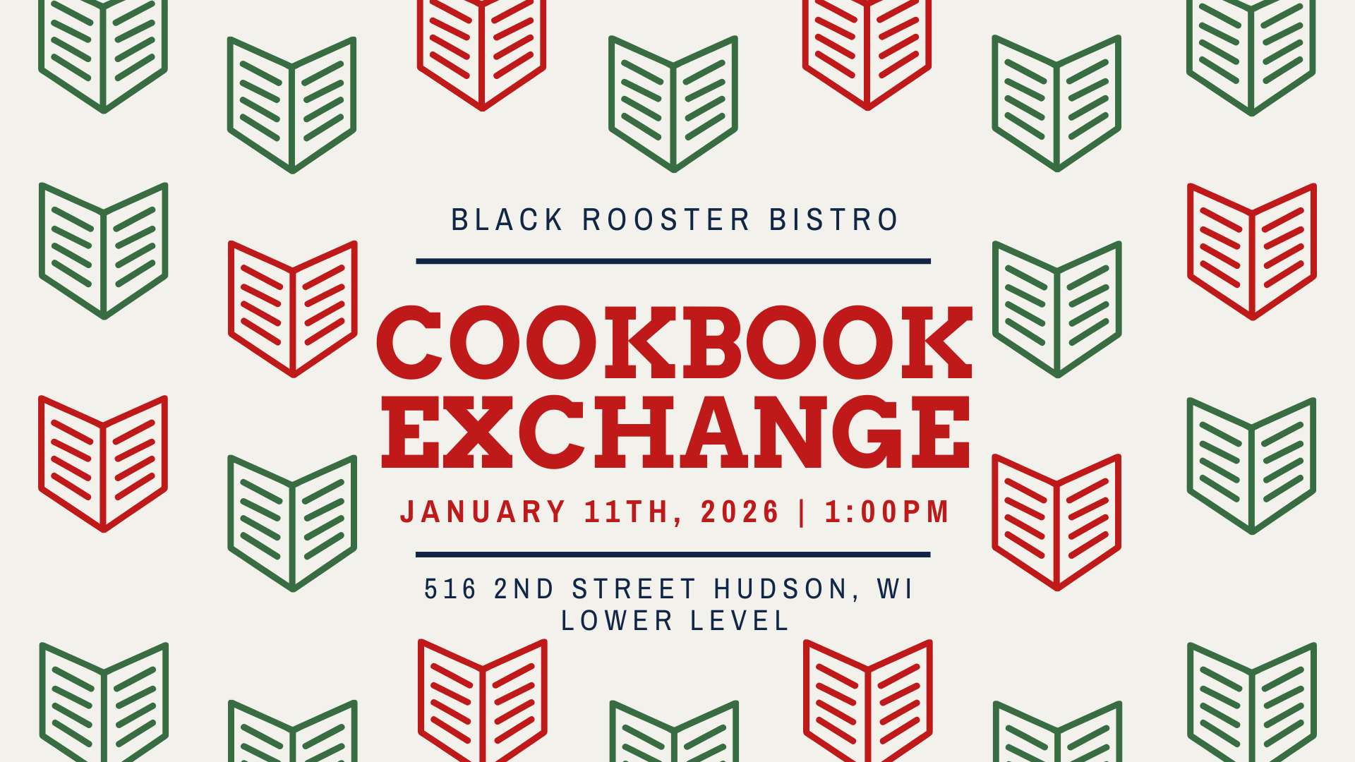 Join us for our second-annual Cookbook Exchange on Sunday, January 11th 2026 @1pm.